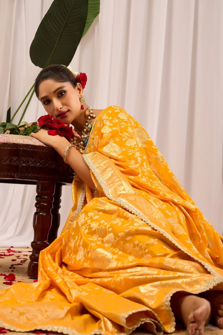 Experience the essence of art and fashion with our Digital Kalamkari saree. The intricate print, inspired by the traditional Kalamkari technique, covers the entire saree, creating a mesmerizing visual. Finished...